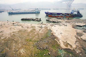 自1月1日以來,重慶羊角灘水位持續(xù)下落,由1月1日的169.42米消落到2月24日的161.90米,55天累計下退7.52米,與去年同期相比下降了近5米的水位。而2月16日,重慶青巖子水位繼2007年以后再次出現(xiàn)-0.2米的百年難遇的特枯水位(相對于重慶零水位計算,我市零水位是海拔160米)。