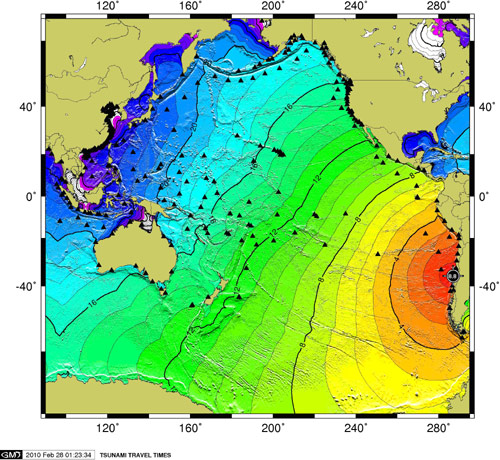 由于此次地震已在智利沿岸引發(fā)了海嘯,位于夏威夷的太平洋海嘯警報中心27日14時46分向智利、秘魯和厄瓜多爾發(fā)布了第一份海嘯警報信息,隨后又將預(yù)警范圍擴(kuò)大至整個中美洲以及太平洋國家和地區(qū)。智利、秘魯、法屬波利尼西亞 、澳大利亞 、新西蘭 、日本等國已經(jīng)發(fā)布了官方的海嘯警報。俄羅斯、菲律賓等國則表示,將密切監(jiān)視海嘯監(jiān)測數(shù)據(jù)情況,然后決定是否發(fā)布海嘯預(yù)警。