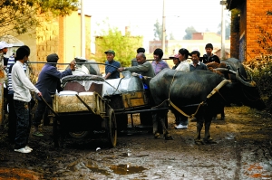 家住河東村的朱家付每天趕著牛車,走個把小時來取水。自從打井隊在雙合村口打出水井后,朱家付結束了每天花兩小時去小壩子村取水的煩惱。他說,“那時候4個人來回6個小時,用桶挑水。”