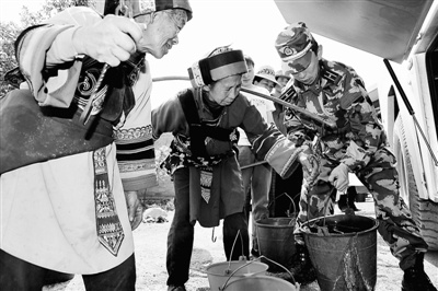 為了讓災(zāi)區(qū)群眾早日告別“滴水貴如油,天天為水愁”的日子,廣大官兵和民兵預(yù)備役人員采取建臨時(shí)抽提水設(shè)施、打水井、建水柜、筑塘壩、截潛流、接山泉等措施,盡最大可能滿足群眾生活和生產(chǎn)用水需要。