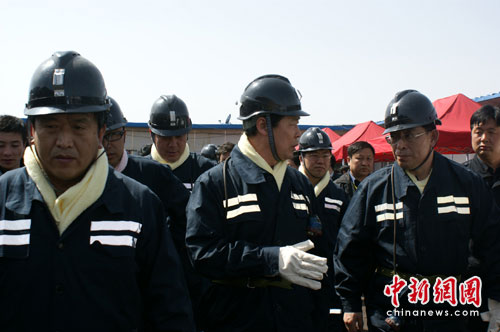 中新網(wǎng)4月2日電(高增平)4月2日,國家安監(jiān)總局局長駱琳、山西省委書記張寶順、山西省省長王君等人兩次在華晉焦煤公司王家?guī)X透水事故搶險救援現(xiàn)場視察,分別在主井、風(fēng)井內(nèi)等處督促指導(dǎo)。