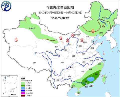 5日入侵我國的冷空氣南下之后,與南方暖濕氣流配合,并給南方大部送去了大量降雨。從3月28日至4月7日十天的全國降水量實況圖來看,江南、華南大部降水非常多,特別是湖南、江西、福建等省部分地區(qū),累計雨量在100-200毫米之間。