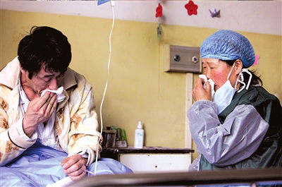48歲的獲救工人魏合榮是湖北襄樊人,大家都叫他老魏。妻子有病在家,托母親和女兒來(lái)看望他。老魏流著淚,緊緊地抱住女兒,又將岳母的手緊緊攥在自己手中。這一幕感染了周圍的醫(yī)護(hù)人員,有人跟著悄悄抹眼淚。一位小護(hù)士對(duì)記者說(shuō),老魏是個(gè)特別樂(lè)觀的人,剛?cè)朐簳r(shí),由于病人們的眼上都蒙著毛巾,醫(yī)生們見(jiàn)不到他們的表情,老魏潔白的牙齒和燦爛的笑容給他們留下了深刻的印象。