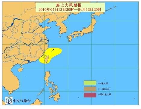 預(yù)計,12日20時至13日20時,受冷空氣影響,渤海、黃海大部海域、東海北部海域?qū)⒂?~7級、陣風(fēng)8~9級的西北風(fēng);東海南部海域、臺灣海峽、臺灣以東洋面將有7~8級、陣風(fēng)9級的東北風(fēng)。另外,南海西北部海域、北部灣海域?qū)⒂?~6級、陣風(fēng)7級的偏南風(fēng)。其他海域天氣海況條件較好。