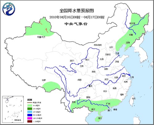 17日08時至18日08時,新疆西部、內(nèi)蒙古東南部、東北地區(qū)南部有小到中雪(雨);西藏東南部、四川盆地東部、江南大部、華南中東部等地的部分地區(qū)有小到中雨。