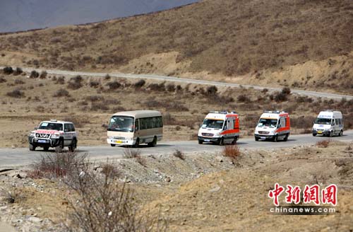 4月16日凌晨4:30分左右,車隊(duì)終于抵達(dá)四川最遠(yuǎn)的縣城石渠縣,休整半小時(shí)后,車隊(duì)出發(fā)離開四川趕往青海省玉樹。經(jīng)過1200余公里,40小時(shí)的長途跋涉,醫(yī)療救援車隊(duì)終于在16日早晨7時(shí)左右平安抵達(dá)青海省玉樹地震重災(zāi)區(qū)。