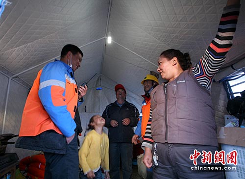 中新網(wǎng)青海玉樹4月21日電(夏江 記者劉忠俊)今晚,我終于可以看書學(xué)習(xí)了!紅旗小學(xué)6歲的青梅拉措拉著媽媽的手高興地說。青海玉樹4.14地震發(fā)生以來,玉樹州最大的小學(xué)紅旗小學(xué)就停止了供電,經(jīng)過四川省電力公司抗震救災(zāi)搶險(xiǎn)隊(duì)員的努力,玉樹紅旗小學(xué)全面恢復(fù)供電。