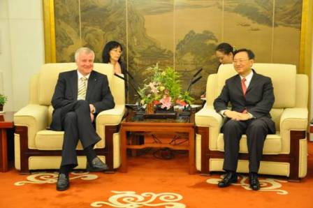 中新網(wǎng)4月27日電 據(jù)外交部網(wǎng)站消息,外交部長楊潔篪今日在外交部會見德國巴伐利亞州州長、基社盟主席澤霍夫。楊外長積極評價(jià)中德關(guān)系以及中國與巴伐利亞州的友好合作,希望雙方相互尊重,進(jìn)一步增進(jìn)了解,努力擴(kuò)大互利合作。澤霍夫說,巴伐利亞州與中國的友誼源遠(yuǎn)流長,前州長施特勞斯1975年訪華時(shí)毛澤東主席曾予接見。巴伐利亞州將繼承傳統(tǒng),繼續(xù)發(fā)展同中國的各領(lǐng)域合作。