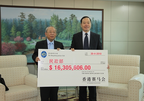 中新網(wǎng)4月30日電 據(jù)民政部網(wǎng)站消息,4月30日,香港賽馬會為青海玉樹地震災(zāi)區(qū)捐款1630.5606萬港幣儀式在民政部舉行。羅平飛副部長會見了專程來京出席捐款儀式的香港賽馬會主席陳祖澤先生一行,對香港賽馬會多年來關(guān)注內(nèi)地慈善事業(yè)發(fā)展,積極參與玉樹災(zāi)后重建的義舉表示贊賞和感謝。