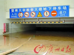 昨日中午,在暨南大學(xué)南門教學(xué)樓的地下停車場,褐紅色的水淹沒了整個車庫!40多輛車在里頭,全完了!币幻吣洗髮W(xué)的老師告訴記者,這個地下車庫約有4米高,水涌出來,接近外面的地面高度,里頭的車完全沒頂了,“就我們知道的,里頭有1輛才買了3個月的奔馳,還有大半都是才買了一兩年的新車,太可惜了!濒叽罂倓(wù)后勤管理處處長張安國表示,這可算是暨大20年來最嚴(yán)重的一次水浸。“水浸原因疑為崗頂排水工程架構(gòu)不良,引起‘倒灌’!(記者黃茜、陸建鑾 通訊員陳文舉、邢曉雯)