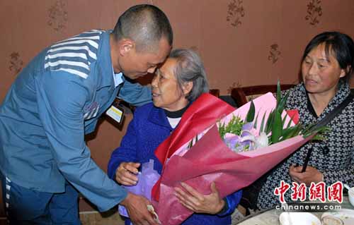 劉元奎扶著母親,牽著女兒,走進(jìn)了飯店的餐廳里,與家人共進(jìn)午餐。8年前,他因犯罪被判17年有期徒刑,此后便再也沒有見到過母親。母親用一雙視力不佳布滿皺紋的眼睛不停地打量著兒子。老母親說:“兒啊!我都過80了,今天以后還能不能再見到你喲?”母親的話如針尖刺在了劉元奎的心頭!皨!我一定好好改造,我剛剛減了3年刑,兩年后就可以出來了,你老人家一定要等我!”劉元奎委托監(jiān)獄民警買來一束康乃馨,把鮮花送到了母親手中說:媽媽,祝你母親節(jié)快樂!