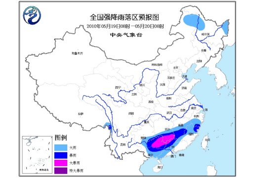 中新網(wǎng)5月19日電 中央氣象臺5月19日06時繼續(xù)發(fā)布暴雨藍色預警:預計,19日08時到20日08時,貴州東南部、湖南南部、江西中南部、浙江南部、福建中北部、廣西中東部、廣東北部和西部以及西藏東南部、云南西北部等地有大雨或暴雨。其中,廣西東北部、湖南南部、廣東西北部等地局部有大暴雨;內(nèi)蒙古東北部、黑龍江東北部和西部的部分地區(qū)有大雨。