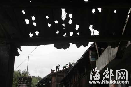 記者遇到的每一個(gè)延平區(qū) 翁坑村村民,都會(huì)伸出拳頭,形容那時(shí)下的冰雹比拳頭還大,“就像打過(guò)來(lái)一陣炮彈!弊蛱熘形纾浾呲s到南平市延平區(qū)峽陽(yáng)鎮(zhèn),這個(gè)中國(guó)歷史文化名鎮(zhèn)失去了往昔的寧?kù)o,在18日傍晚遭受特大冰雹襲擊后,該鎮(zhèn)小梅、杜溪、陳坍、葛大、翁坑、大埂、浪石等村1200多戶(hù)6000多村民嚴(yán)重受災(zāi),房屋瓦片被大面積擊穿,其中翁坑村、葛大村災(zāi)情最為嚴(yán)重。