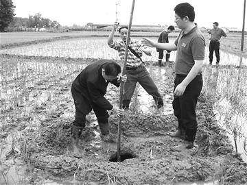 對(duì)于如何處理這兩個(gè)“天坑”,劉俊賢建議,首先,要在坑洞周圍不小于3米的范圍內(nèi)拉上警戒線,豎立警示標(biāo)志,防止小孩等掉入坑洞內(nèi)。其次,盡快回填塌陷坑洞,回填時(shí)應(yīng)分層夯實(shí),避免砂土等透水性較強(qiáng)土體回填,回填后應(yīng)滿足水田種植要求;靥钪埃瑧(yīng)阻擋灌溉水等地表水繼續(xù)流入塌陷坑洞中,以免坑洞進(jìn)一步擴(kuò)大。
