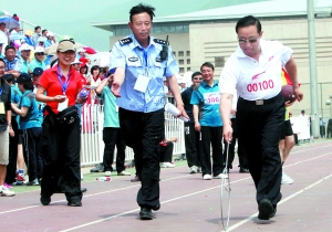 傅政華帶領(lǐng)北京市公安局領(lǐng)導(dǎo)班子,比賽跳繩,并以30秒68次的成績(jī),名列第三名,其實(shí)就是倒數(shù)第二名。