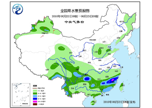 22日08時至23日08時,西藏東部、青海大部、川西高原有小到中雨(雪)或雨夾雪,其中,西藏東南部的部分地區(qū)有大雨;新疆北部、甘肅南部、陜西南部、華北中南部和西部、山東中北部、東北地區(qū)東部、江漢南部、江南大部、華南、西南地區(qū)有小到中雨或陣雨,其中,云南西部、四川東南部、貴州北部、湖南東南部、江西南部、浙江東南部、福建大部、廣東東部、廣西東北部等地的部分地區(qū)有大雨,局地有暴雨,上述部分地區(qū)并伴有短時雷雨大風(fēng)或冰雹等強(qiáng)對流天氣。新疆北部有5~6級風(fēng),山口地區(qū)風(fēng)力可達(dá)8~9級,甘肅西部、內(nèi)蒙古西部等地有4~5級風(fēng)。渤海、黃海北部有4~6級東北風(fēng);東海大部、臺灣海峽有4~6級西南風(fēng);南海大部有4~6級偏南風(fēng)。