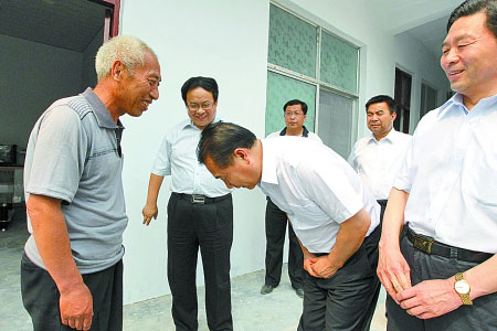6月21日,省高院院長(zhǎng)張立勇率領(lǐng)省高院和商丘市中院兩級(jí)法院的領(lǐng)導(dǎo)班子來(lái)到柘城縣農(nóng)民趙作海的新家。針對(duì)因法院判錯(cuò)案給趙作海一家?guī)?lái)的困境,張立勇院長(zhǎng)向趙作海鞠躬致歉。面對(duì)高院院長(zhǎng),趙作海感到極為意外,說(shuō):“我對(duì)現(xiàn)在的生活很滿意,現(xiàn)在是滿天的云彩都散了……”當(dāng)天上午,兩級(jí)法院還就如何避免再次發(fā)生類似案件專門進(jìn)行了反思。