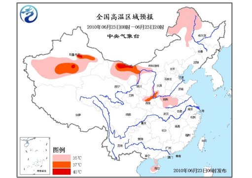 中新網(wǎng)6月23日電 中央氣象臺6月23日06時繼續(xù)發(fā)布高溫藍色預警:預計,今天白天,甘肅西部偏北地區(qū)、寧夏北部、內蒙古西部和東北部、黑龍江西部、山西西南部、河南中東部、安徽西北部、陜西關中地區(qū)以及海南大部有35~37℃的高溫天氣,其中,內蒙古西部的局部地區(qū)最高氣溫可達40~41℃。新疆南疆盆地大部以及吐魯番和哈密地區(qū)將有35~37℃的高溫天氣,其中,吐魯番盆地最高氣溫可達40℃。