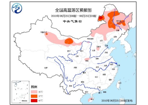 中新網(wǎng)6月25日電 中央氣象臺(tái)6月25日06時(shí)繼續(xù)發(fā)布高溫藍(lán)色預(yù)警:預(yù)計(jì),今天白天,甘肅西部、內(nèi)蒙古大部、黑龍江大部、吉林西部和北部、河北東北部和西南部、陜西關(guān)中地區(qū)、海南中西部等地有35~37℃的高溫天氣,其中,內(nèi)蒙古西部和東北部局地最高氣溫可達(dá)38℃以上。