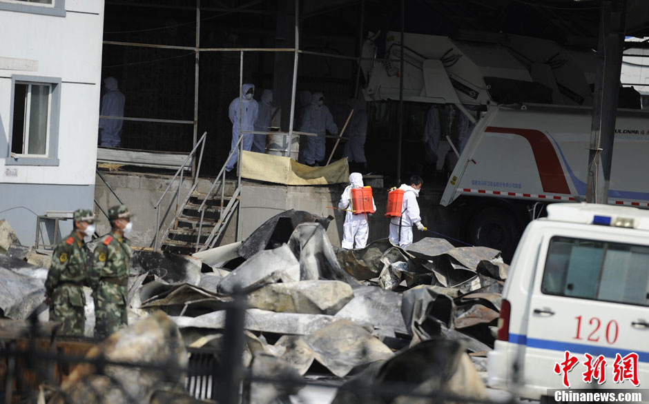 吉林繼續(xù)對禽業(yè)公司火災(zāi)現(xiàn)場進(jìn)行消殺防疫處理