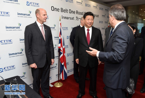 10月22日,國家主席習(xí)近平在倫敦參觀國際移動衛(wèi)星公司。新華社記者 張鐸 攝