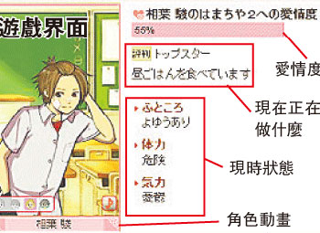 為勾起會員“青澀的初戀感覺”,整個虛擬環(huán)境設(shè)定在某所中學(xué)校園里。用戶登入之后,可以從4名卡通風(fēng)格的男角中,選一人作為“網(wǎng)上男朋友”,在校園內(nèi)談情說愛。4個男生各有特色,包括高材生型、陽光型、壞男孩型和教師型。這些虛擬男友由多名男聲優(yōu)配音,用家如果想和“男友”增進感情,就要多登入該網(wǎng),然后通過對話和其它虛擬活動,來令“愛情度”增加。