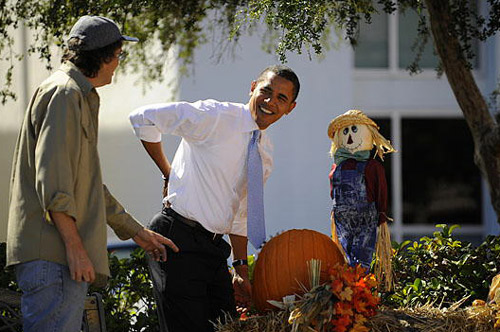 10月30日,在美國佛羅里達州的薩拉索塔,選戰(zhàn)中四處奔走的美國民主黨總統(tǒng)候選人奧巴馬忙里偷閑,來到當?shù)氐囊患夷瞎蠄@摘南瓜,享受片刻悠閑。