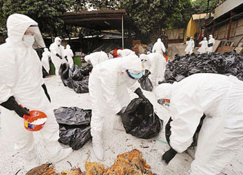 漁護署、衛(wèi)生署與食環(huán)署9日下午舉行禽流感督導(dǎo)委員會會議,香港食物及衛(wèi)生局局長周一岳會后會見記者時稱,因應(yīng)在香港農(nóng)場發(fā)現(xiàn)禽流感病毒,決定把香港禽流感的戒備應(yīng)變級別提升至嚴重級別,并把肇事雞場列為疫點,雞場方圓3公里范圍內(nèi)列為疫區(qū),須銷毀疫區(qū)內(nèi)所有雞只,涉及2個雞場共8萬只活雞。