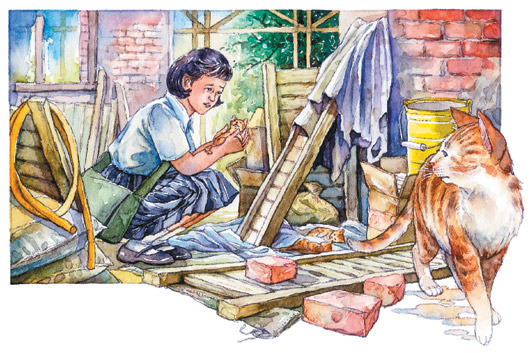 當我抱著那幸存的一只小貓回家時,我聽見鄰居正在談論,母老虎的主人因為氣它偷吃人家的小雞,所以在幾天前,把母老虎裝進布袋,丟到大海里淹死了。我抱著小貓,覺得震撼又不可思議,繼而交織著氣憤、難過,默默的對母老虎說:“母老虎,妳放心,我會幫你照顧你的孩子!