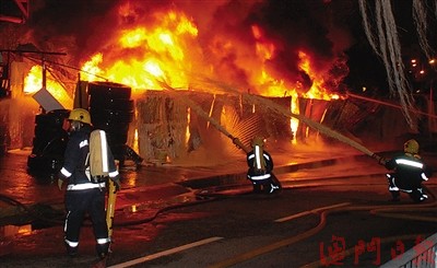 事發(fā)后,消防員接報趕至開動多支喉筆,從四面八方向火場噴灑化學泡沫及射水灌救,花一個半小時才能將大火完全撲熄,無人受傷,F場為華南工業(yè)大廈旁的露天廢舊輪胎回收場,該回收場早前搬遷至氹仔孫逸仙博士大馬路一地盤,但舊場目前仍存放大批輪胎。