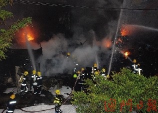 現場消息指,9日清晨近6時,有人發(fā)現舊輪胎回收場失火時,火勢已十分猛烈。大批救援人員接報趕抵現場,消防員發(fā)現火場面積有20米乘30米,足有一個籃球場般大,火舌不斷從場內噴出對面處的馬路。