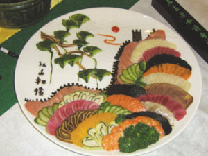 以色命名:金玉羹、玉露團、琥珀肉。以時令命名:冬凌粥、秋葉餅。以烹調(diào)技法命名:滑熘里脊、粉蒸肉、干炸帶魚。以地名命名:北京烤鴨、南京板鴨、涪陵榨菜。以人物命名:東坡肉、文思豆腐、宮爆雞丁。以典故命名:柳浪聞鶯、掌上明珠、陽關三疊。以比喻、寄意、抒懷命名:通神餅、龍鳳腿、龍眼包子、麒麟魚、鴛鴦魚片、螞蟻上樹。以數(shù)字命名:一窩絲、二色膾、三不粘、四美羹、五福餅、六一菜、七返糕、八寶飯、九絲湯、十遠羹、酒醉十三蠔、二十四氣餛飩、五彩牛百葉、八寶三味梨、百鳥歸鳳、千層糕、萬年紫鮑。