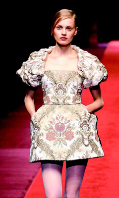 但也有極少數(shù)服裝品牌不信邪,主推青春性感的短裙,例如Louis Vuitton秋冬女裝就以短裙為主,色彩繽紛鮮艷,充滿歡樂愉快的氣息。GUCCI女裝也以利落的短裙為主,搭配黑色長(zhǎng)靴或黑褲襪,十分帥氣。