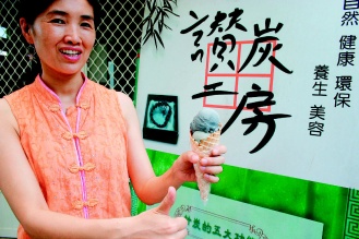 竹炭能當(dāng)冰吃?花蓮縣鳳林鎮(zhèn)贊炭工房把細(xì)磨的竹炭粉,摻入糯米粉,制成冰淇淋,有QQ的口感,而且真的有一股炭味,吃起來很不一樣。