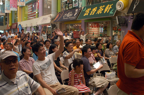當天下午一時許,法拉盛購物中心的大堂內(nèi)已經(jīng)聚集了數(shù)百位華人球迷,座無虛席,二樓的走廊上也站了不少觀眾,其中以男性觀眾為主,也有婦女和兒童。某廣告公司在這里主辦了民眾一起看世界杯的活動,邀請了李昌林、譚琳等華文媒體的專業(yè)主持人在現(xiàn)場解說,觀眾還可以參加抽獎,大獎是紐約至上海的往返機票,F(xiàn)場的舞臺上樹起了大屏幕,會場周圍還有數(shù)臺小電視機。隨著比賽的開始,進入會場觀戰(zhàn)的人越來越多。在加時賽的第26分鐘,西班牙攻入唯一一球,引起了全場的沸騰。據(jù)主辦方介紹,當天來現(xiàn)場的觀眾多達千人,而前一天半決賽的觀眾也有700余人。