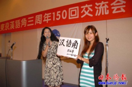 交流會上展示了中國駐日大使程永華揮毫題寫的“漢語角”3個大字,顯示了中國駐日大使館對中日民間交流的重視和對舉辦漢語角的支持。