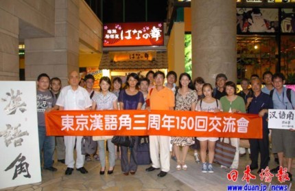 據(jù)介紹,2007年8月,日本僑報社在東京創(chuàng)辦了首個星期日漢語角,至今已開展150次交流活動,先后有5000多人次參加。去年8月,還在東京郊外的崎玉市浦和車站前創(chuàng)設(shè)了浦和漢語角。今年6月,又在東京郊區(qū)的小平市創(chuàng)辦了首個室內(nèi)漢語角。東京的星期日漢語角先后邀請為中日交流作出貢獻的學(xué)界、政界和商界精英前來發(fā)表演講,獲得廣泛好評。同時,漢語角還與國內(nèi)的多個日語角舉行定期交流活動。