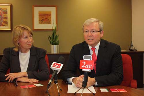 中新網(wǎng)8月19日電 據(jù)澳洲新快網(wǎng)報(bào)道,為爭取Bennelong選區(qū)華人支持,陸克文(Kevin Rudd)、麥嬌(Maxine McKew)8月18日下午在聯(lián)邦政府大廈會晤華文傳媒,支持被他成為20多年好友的麥嬌,表示如果工黨贏得大選他將在聯(lián)邦政府內(nèi)任職。