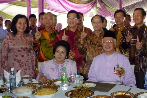 中新網(wǎng)9月19日電 據(jù)馬來(lái)西亞《星洲日?qǐng)?bào)》報(bào)道,馬來(lái)西亞首相納吉18日回到選區(qū)北根舉辦開齋節(jié)門戶開放活動(dòng),華總會(huì)長(zhǎng)方天興率領(lǐng)彭亨華人社團(tuán)聯(lián)合會(huì)及彭亨中華工商會(huì)眾領(lǐng)袖一起出席,并贈(zèng)送月餅予首相,象征月圓、人圓、全民團(tuán)結(jié)!