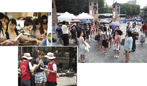 一行人抵達(dá)景福宮的時(shí)間是下午2時(shí)45分,比計(jì)劃晚了40分鐘。原因是部分游客在仁寺洞購物拖延了時(shí)間。導(dǎo)游張某開始對景福宮進(jìn)行介紹,但幾乎沒有人聽。張某說:“來韓國旅游的游客大都是大學(xué)畢業(yè)的二、三十歲女性,在中國引領(lǐng)消費(fèi)文化的白領(lǐng)女性。他們比起文化遺產(chǎn),更關(guān)心購物!