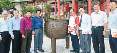 南方學(xué)院院長祝家華說,銅制的“南方之鼎”由新加坡藝術(shù)家陳瑞獻(xiàn)設(shè)計,在廈門制作,耗費5萬令吉,重200公斤,高160公分!笆紫嘣诮舆^火炬后,會在南方之鼎內(nèi)點燃圣火,過后將永久存放南院,象征人文精神永留于此。”