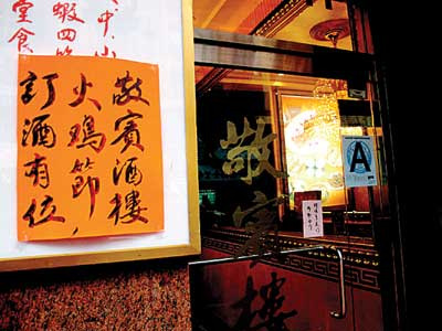 華埠東百老匯的敬賓酒樓雖然近日才貼出火雞節(jié)宴席預(yù)訂告示,但業(yè)者介紹預(yù)訂活動(dòng)早在一年前便開始,宴席也已被訂走大半。