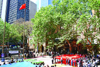 一日是新中國成立六十周年國慶之日,上午十時正,在悉尼市政府的廣場,一早匯集了近二百名的中國留學生和華僑。留學生們舉著特大的中國國旗和澳洲國旗,等待一個偉大的時刻來臨。