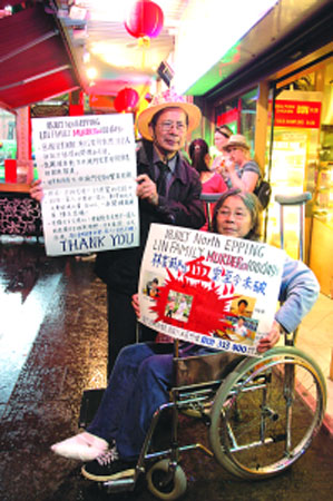 10月25日是悉尼北葉坪滅門慘案百日祭。在瓢潑大雨籠罩下的華埠德信街牌樓附近,林暋的母親朱鳳琴坐在輪椅上,右腳綁縛石膏板,高聲向過路人呼喚,希望關注林家的悲慘遭遇。