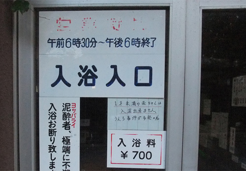有一回路過京都一處公共浴池,看到一張雷人的小紙條,并同“拒絕醉漢入內”一起貼出來。上面寫的是“謝絕不滿1周歲的未成年幼兒入浴,因為發(fā)現(xiàn)他們在里面老拉巴巴!”