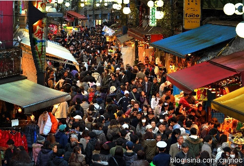 12月29日,位于東京上野的AMEI橫商店街按照傳統(tǒng)開始銷售過年時候使用的海產(chǎn)品等年貨。那個場景,可以用“人山人海”來形容。據(jù)統(tǒng)計,今年的顧客比去年增加了6萬人,高達44萬人。大減價的叫賣聲此起彼伏,當?shù)氐牡赇伬习逭f:“從來沒有看見過這么便宜的物品,從來沒有看見過這么不景氣的景象,看著人多,東西便宜,就是不景氣!”