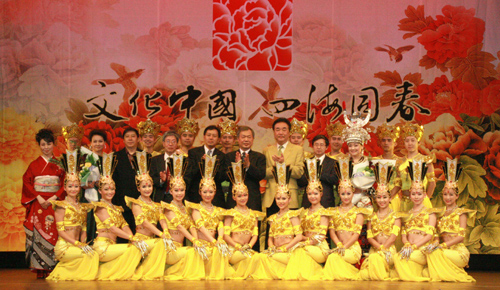 “文化中國•四海同春”2010年春節(jié)亞洲藝術(shù)團(tuán)團(tuán)長、國僑辦黨組成員熊昌良、中國駐大阪總領(lǐng)事館總領(lǐng)事鄭祥林與當(dāng)?shù)厝A人華僑和日本觀眾一同觀看了演出。鄭祥林熱烈歡迎給關(guān)西地區(qū)華僑華人帶祖(籍)國問候和祝福的“四海同春”藝術(shù)團(tuán)。他表示,藝術(shù)團(tuán)精心挑選的節(jié)目里凝聚著祖(籍)國母親對海外游子的親情和關(guān)愛,在春節(jié)和元宵佳節(jié)期間為華僑華人增添了更多的喜慶氣氛,讓華僑華人倍加思念祖(籍)國。