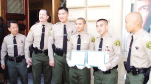 畢業(yè)后被分配到洛杉磯雙塔監(jiān)獄工作的陳得光,7歲的時候跟隨父母從香港移民美國,并在柔似密安家落戶。從小就想當警察的他06年報名加州大學爾灣分校,專修犯罪心理學,畢業(yè)后又在今春報名參加了洛縣警局警察培訓學校,經過19周的緊張訓練,終于在今天的畢業(yè)典禮上穿上了夢寐已久的警服。
