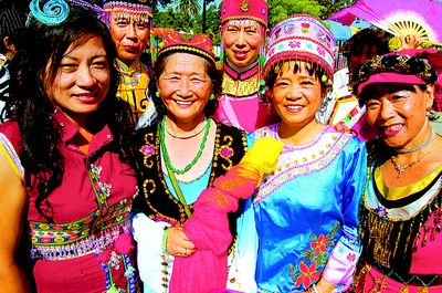 1977年赴美的臺(tái)灣原住民曹開梅女士此次第一次與會(huì),身著靚麗民族服飾與許多來自中國(guó)大陸的回族、滿族、彝族等少數(shù)民族朋友一起組成少數(shù)民族方陣,亮相蒙市升旗儀式。