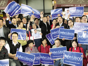中新網(wǎng)10月2日電 據(jù)美國(guó)《僑報(bào)》報(bào)道,在紐約市主計(jì)長(zhǎng)復(fù)選中完勝對(duì)手的劉醇逸9月30日在繁忙的市議會(huì)工作之余,來(lái)到華埠沿街謝票,向所有支持他的民眾、商家、社區(qū)僑團(tuán)致以衷心感謝,并呼吁大家再接再厲,在11月普選時(shí)投票給他。